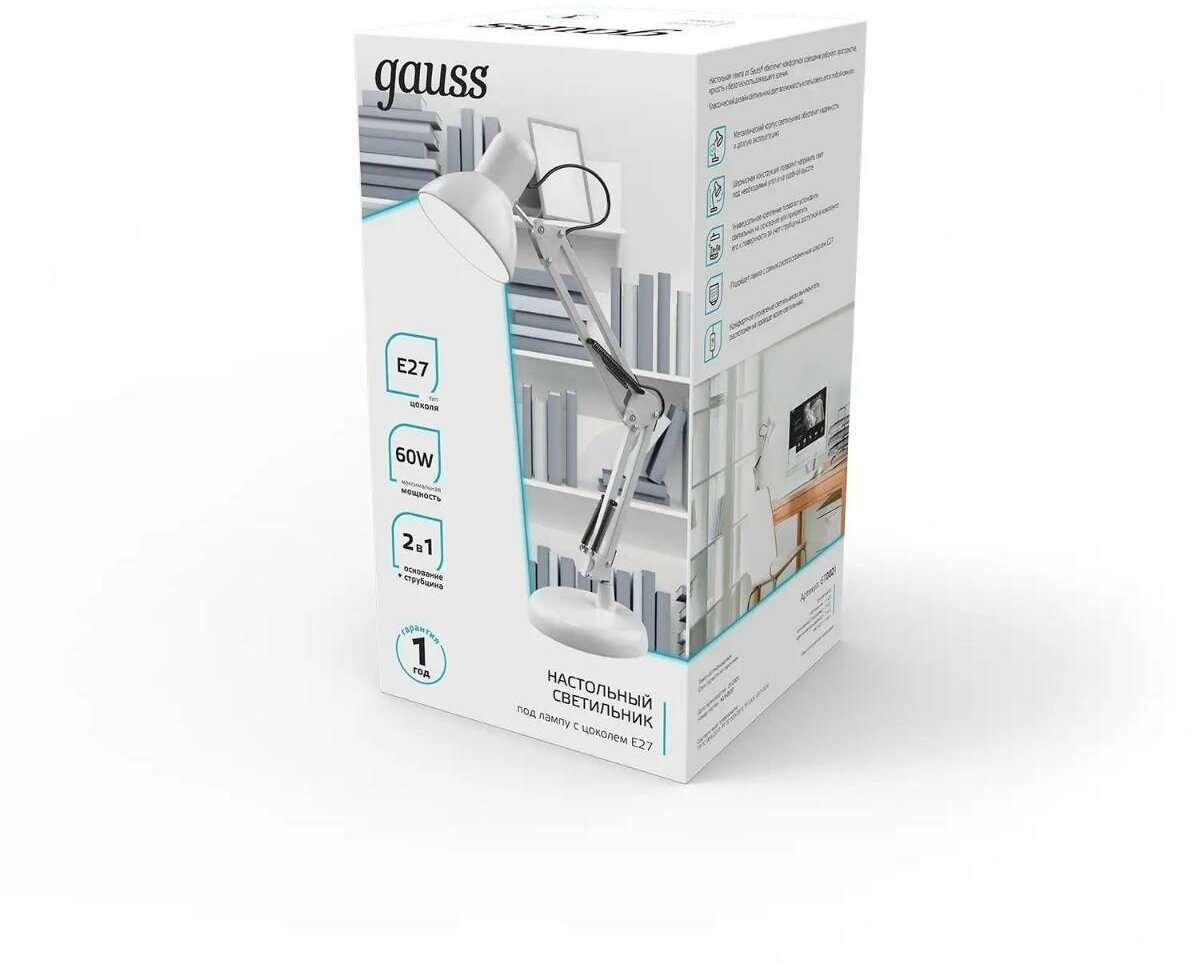Светильник настольный Gauss модель GTL002 60W 220-240V E27 белый струбцина и основание 1/12