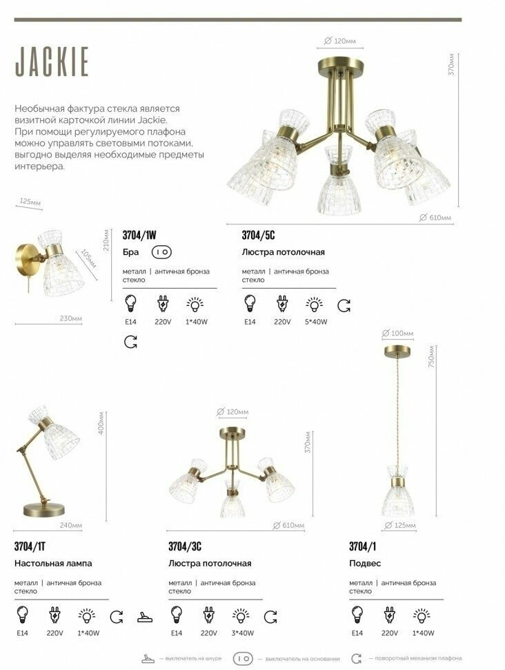 Ниже Вы можете прочитать отзывы на Настольная лампа LUMION JACKIE 3704/1T E14 40W бронзовый, ознакомится с подробными характеристиками, посмотреть интересные обзоры и фотографии на Настольная лампа LUMION JACKIE 3704/1T E14 40W бронзовый.
