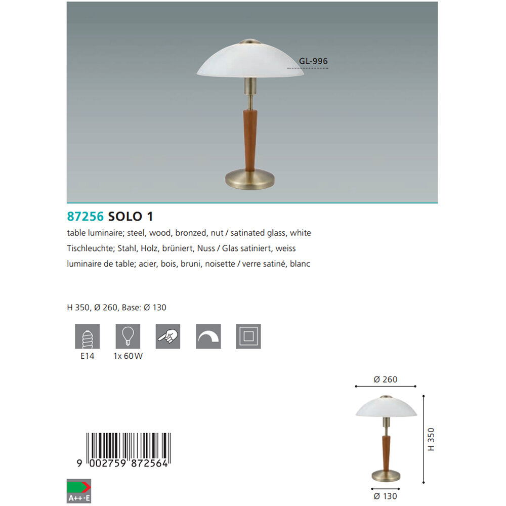 Интерьерная настольная лампа Solo 1 87256 Eglo