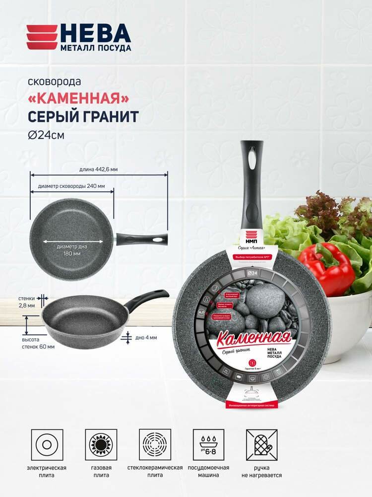 Сковорода Нева Металл Посуда НМП "Каменная" Серый гранит 24 см, 19124