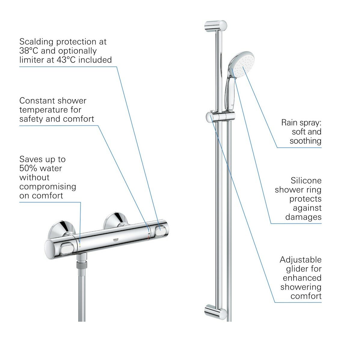 Термостат для душа GROHE QuickFix Precision Flow с душевым гарнитуром, хром (34842000)