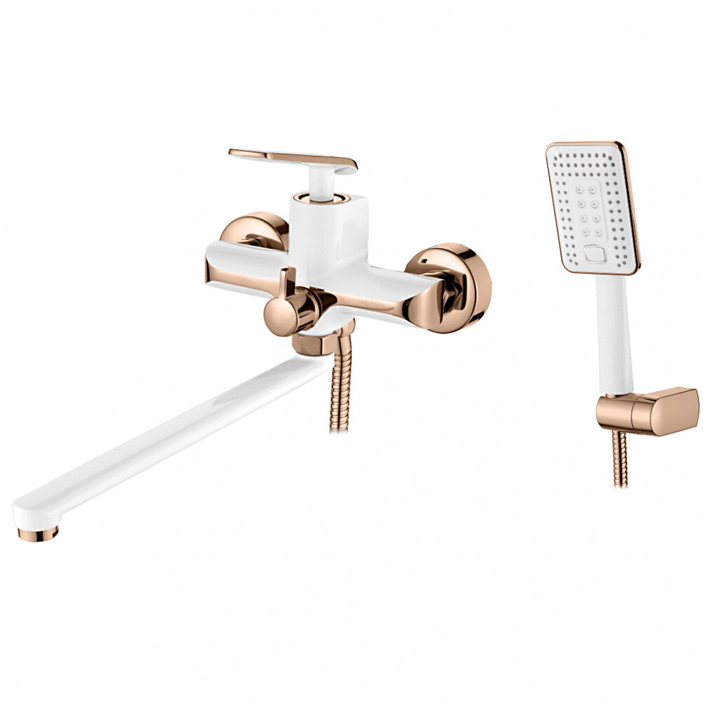 Cмеситель для ванны Ledeme с длинным изливом 350мм белый+розовое золото L2274WR