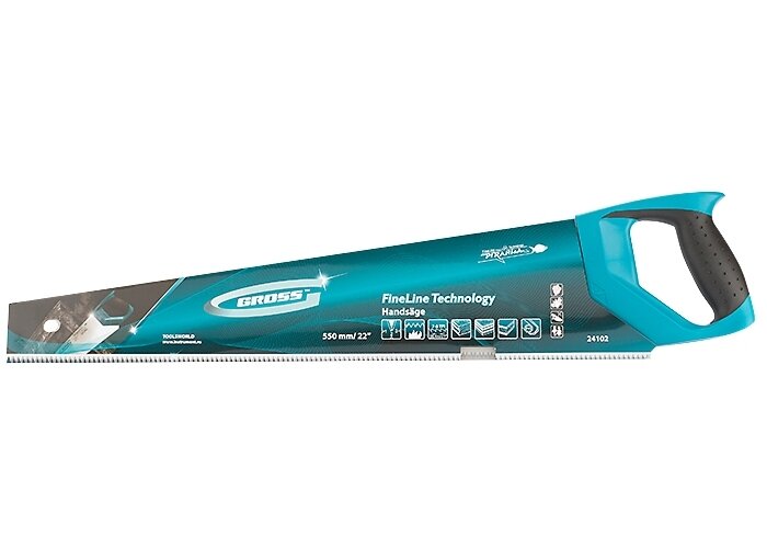 Ножовка по дереву Gross PIRANHA 550 мм, 7-8 TPI, зуб - 3D, каленый зуб, 2-х комп. рук-ка 24102