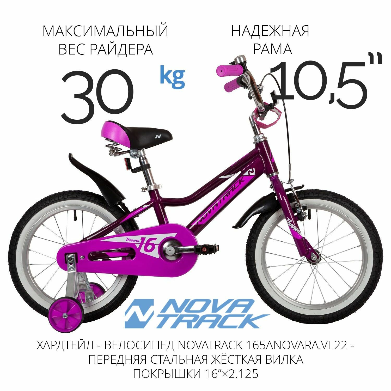 Велосипед детский Novatrack Novara 16 (2022) фиолетовый 153730 (165ANOVARA.VL22)
