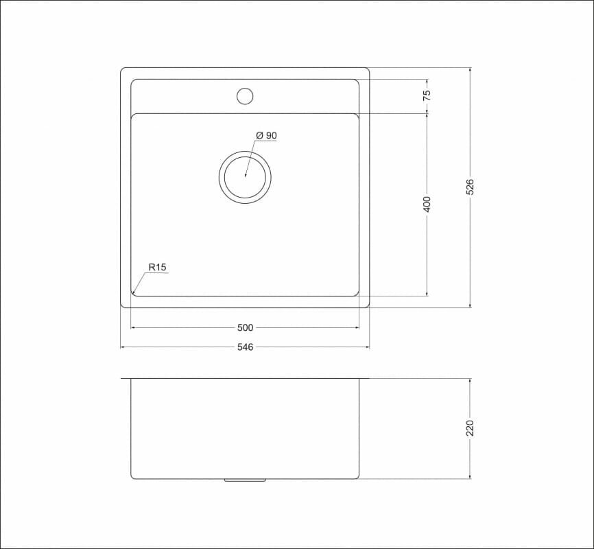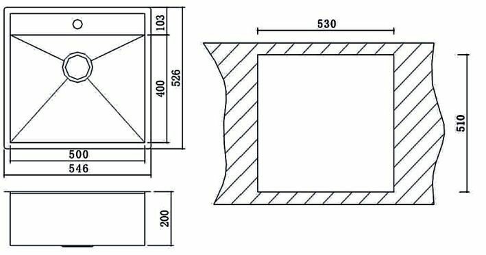 Мойка для кухни из нержавеющей стали Оулин OL-F121X прямоугольная нулевой радиус закругления сатин 54.6х52.6см глубина 22см / раковина кухонная