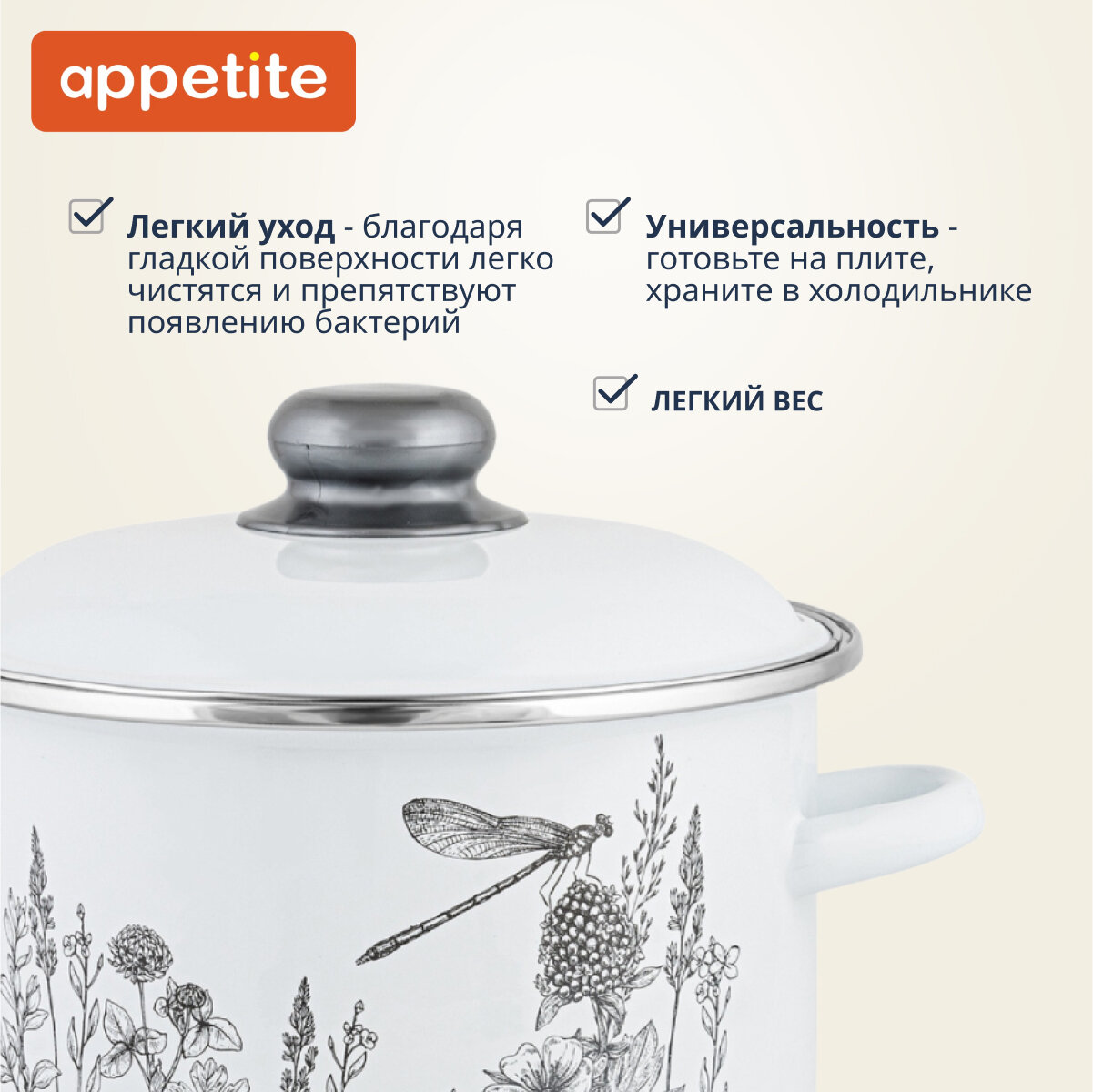 Кастрюля эмалированная Appetite FLORA-2, с крышкой, 4 л
