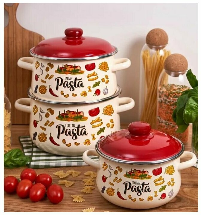 Кастрюля эмалированная Appetite Pasta ITALIAN, с крышкой, 4 л