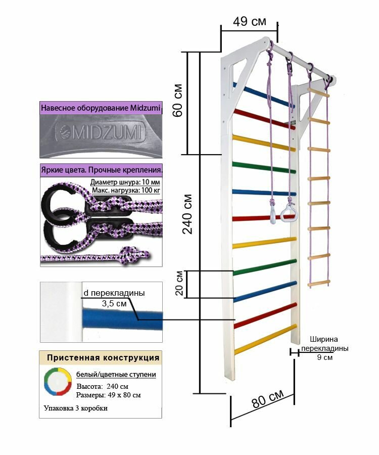 Шведская стенка Midzumi Midori белый/радуга интересное: