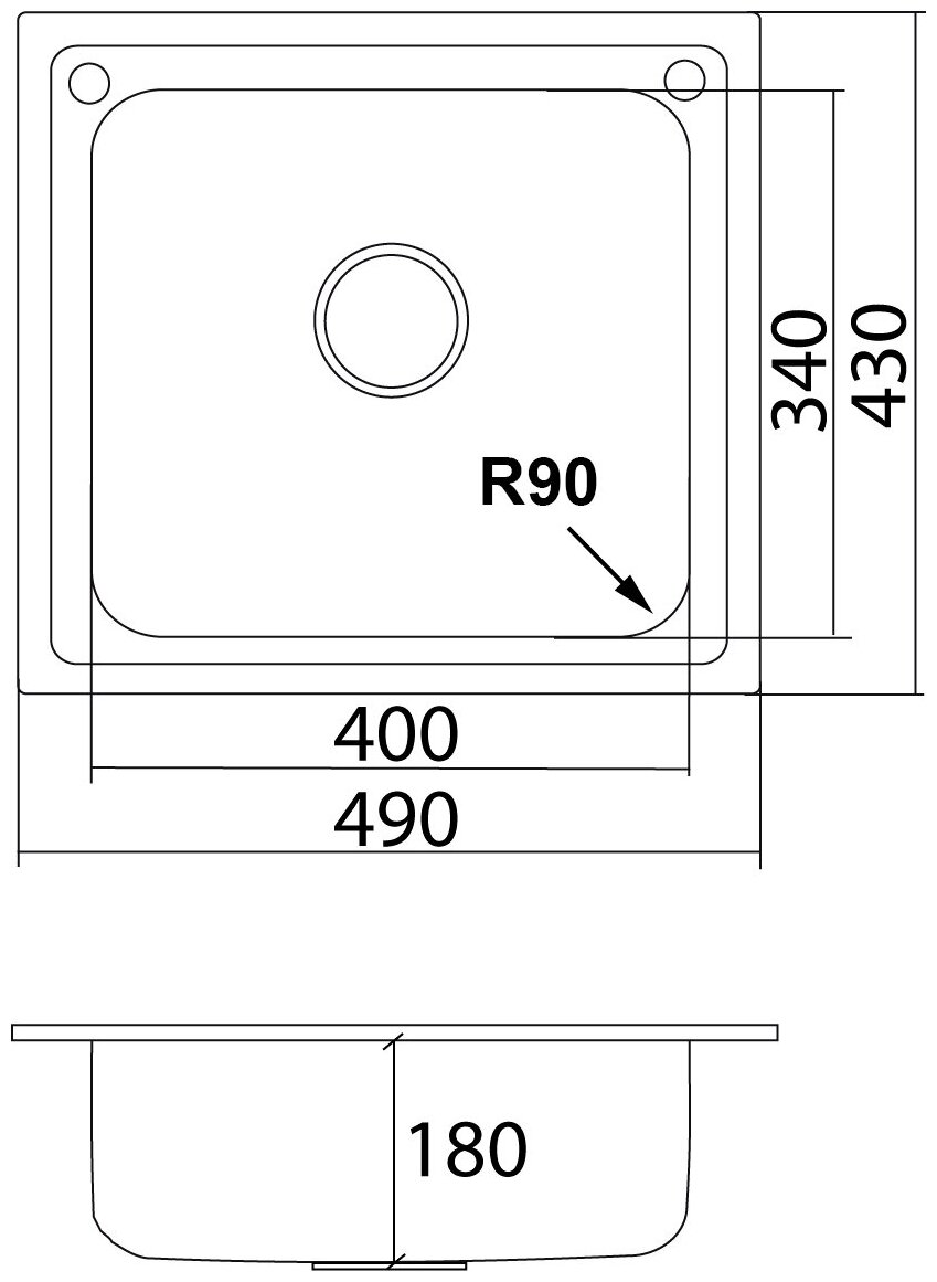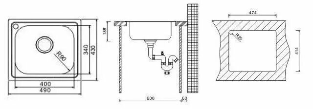Мойка для кухни врезная нержавеющая (1 мм) OULIN OL-203, прямоугольная, 490х430х180 мм