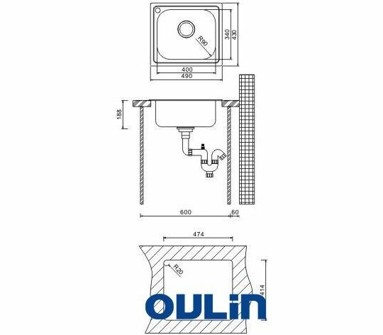 Мойки Oulin OL-203 (F&P), мойка, нержавеющая сталь сатин