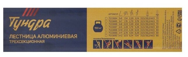 Лестница тундра, трехсекционная, алюминиевая, 8 ступеней 7533886