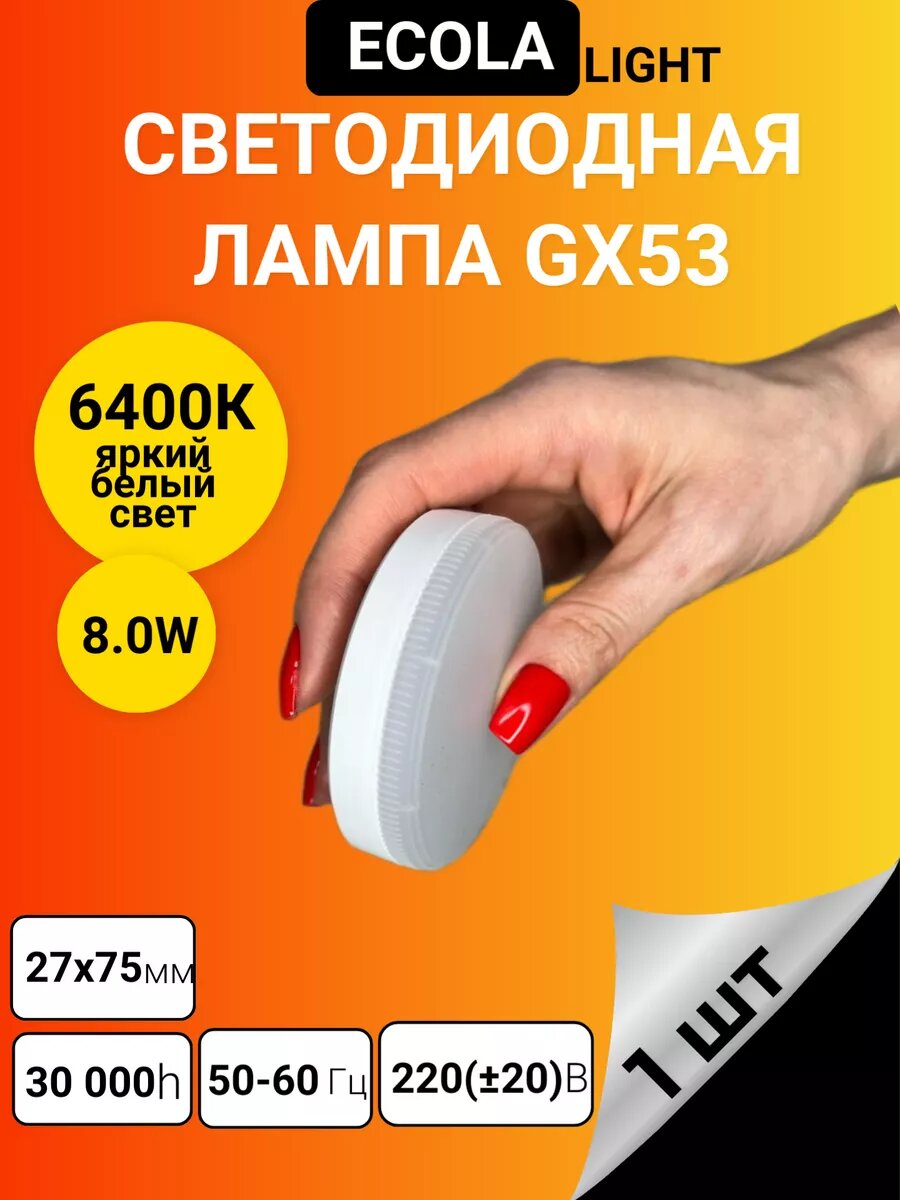 Лампа светодиодная (комплект ламп - 5 шт) Ecola Light GX53 8,0W 6400K холодный белый свет 27x75мм (лампочка Экола 8 Вт)