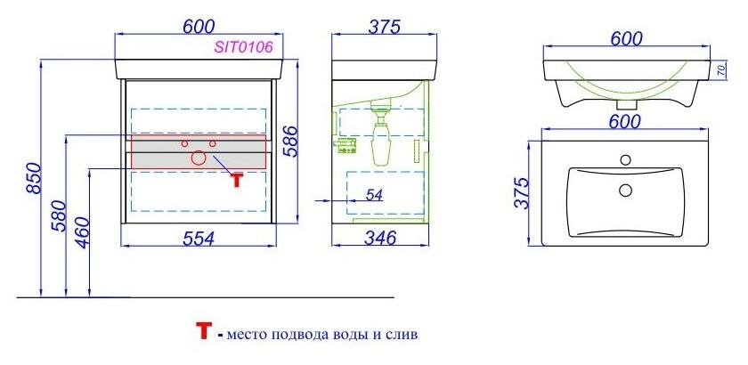 Aqwella Тумба под раковину Aqwella Сити Т6м/DB 60 CI0106DB Дуб балтийский