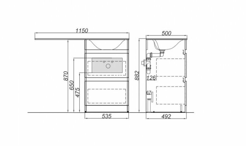 Тумба с раковиной для ванной Кристалл 50 белая.