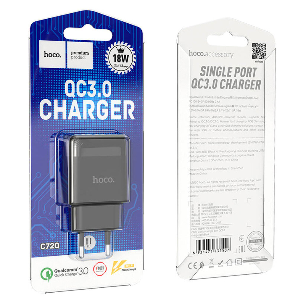 Сетевое зарядное устройство Hoco C72Q, 18 Вт, USB QC3.0 - 3 А, черный