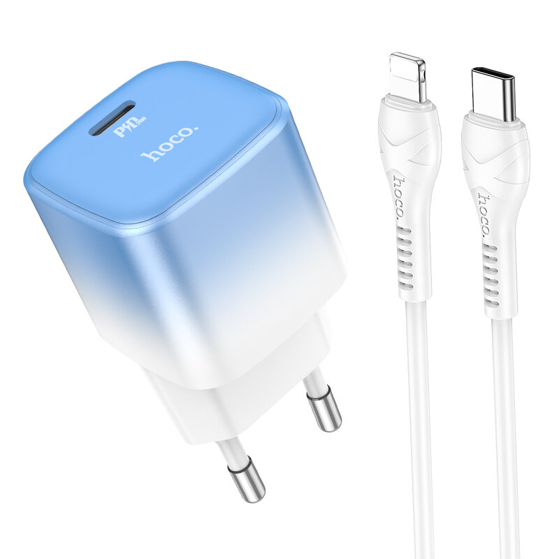 Зарядное устройство Hoco C101A, голубой/белый (PD, 1xUSB-C, 20W, кабель Type-C - 8pin)