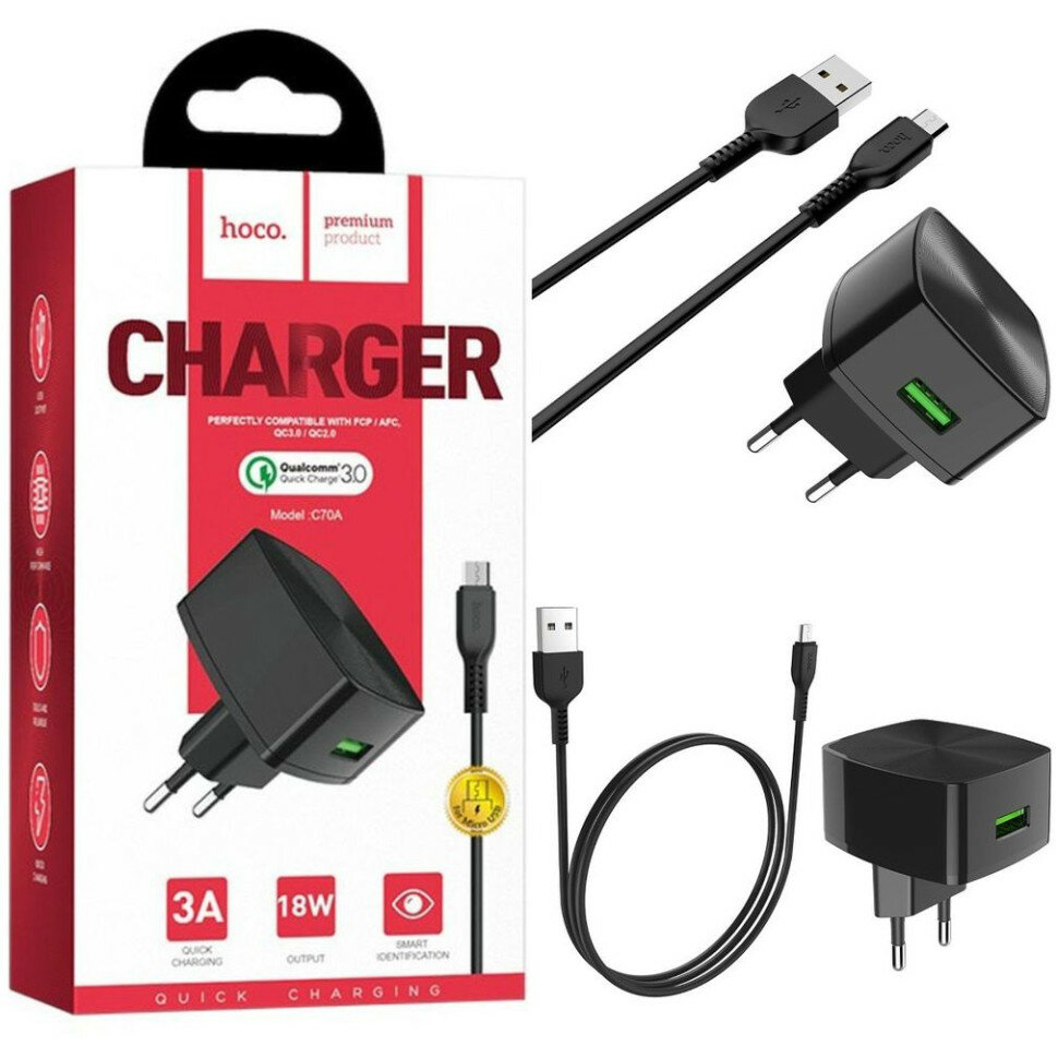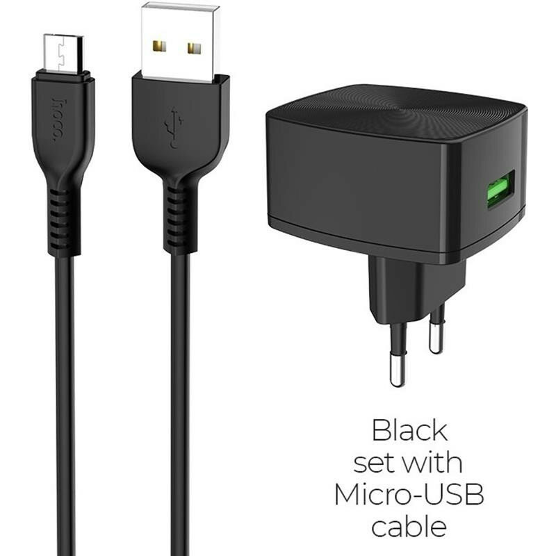 Сетевое зарядное устройство (СЗУ) Hoco C70A QC 3.0 (USB) + кабель MicroUSB, 3 A, черный