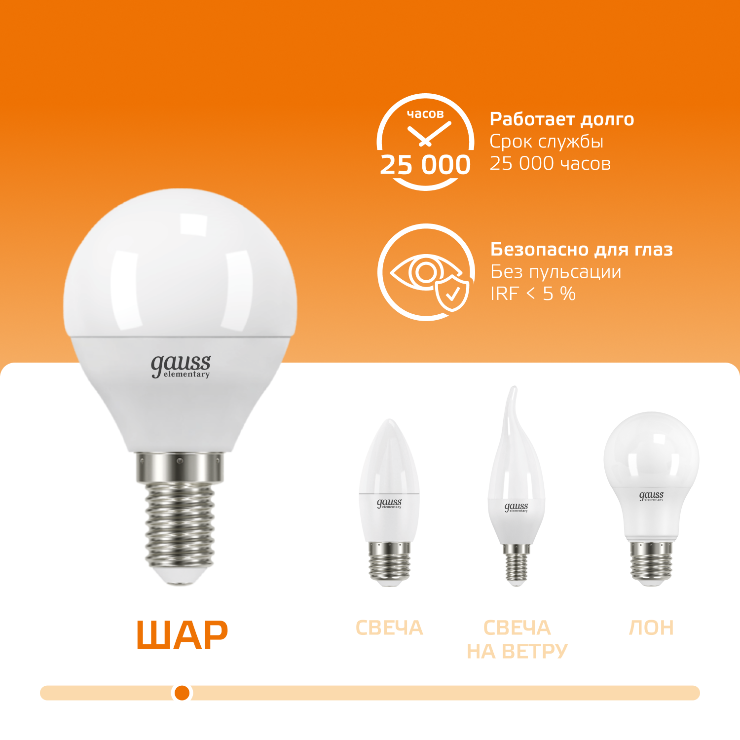лампочка Gauss Elementary шар 8W E14 3000K 53118 ЛОТ 10 шт