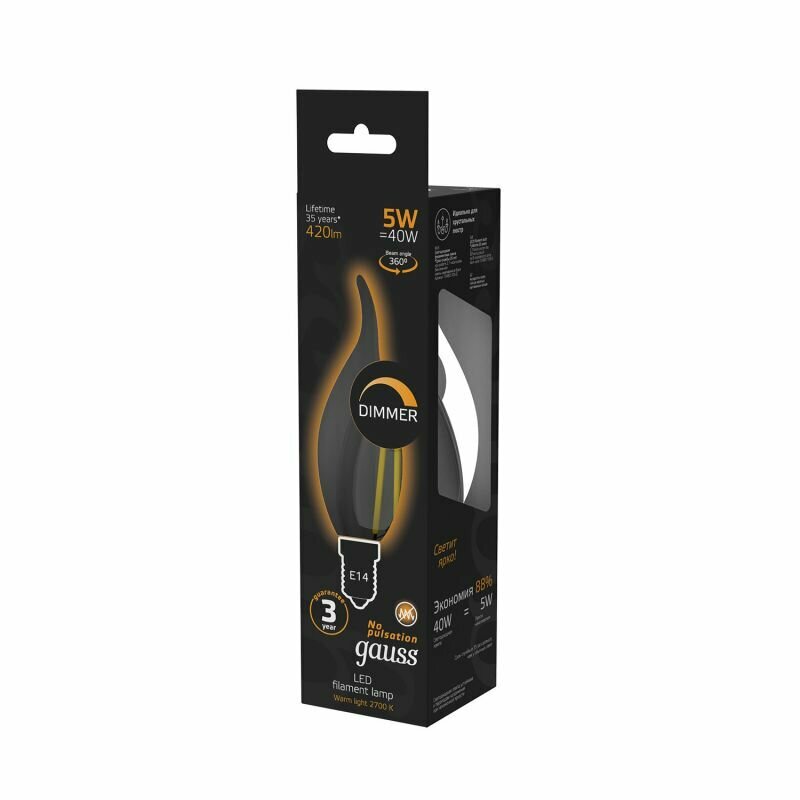 Светодиодная лампа Gauss "Свеча на ветру" 5Вт 420Лм Е14 2700К Диммируемая