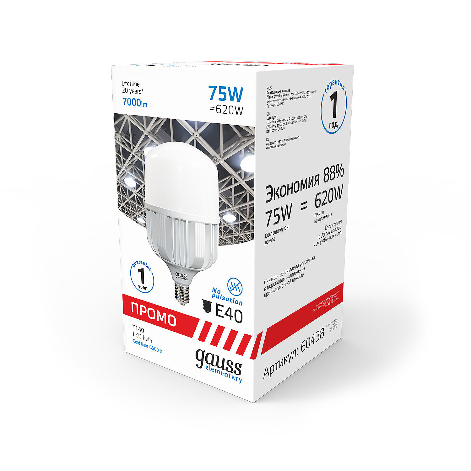 Лампочка светодиодная Gauss Promo LED Elementary 75В 6500K 7000Лм E40 60438