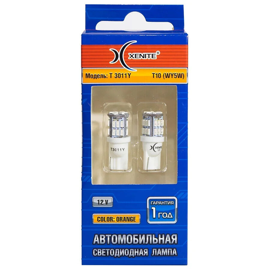 Лампа Светодиодная 12v Wy5w T10 T3011y Бесцокольная Желтая Блистер (2шт.) Xenite Xenite арт. 1009542