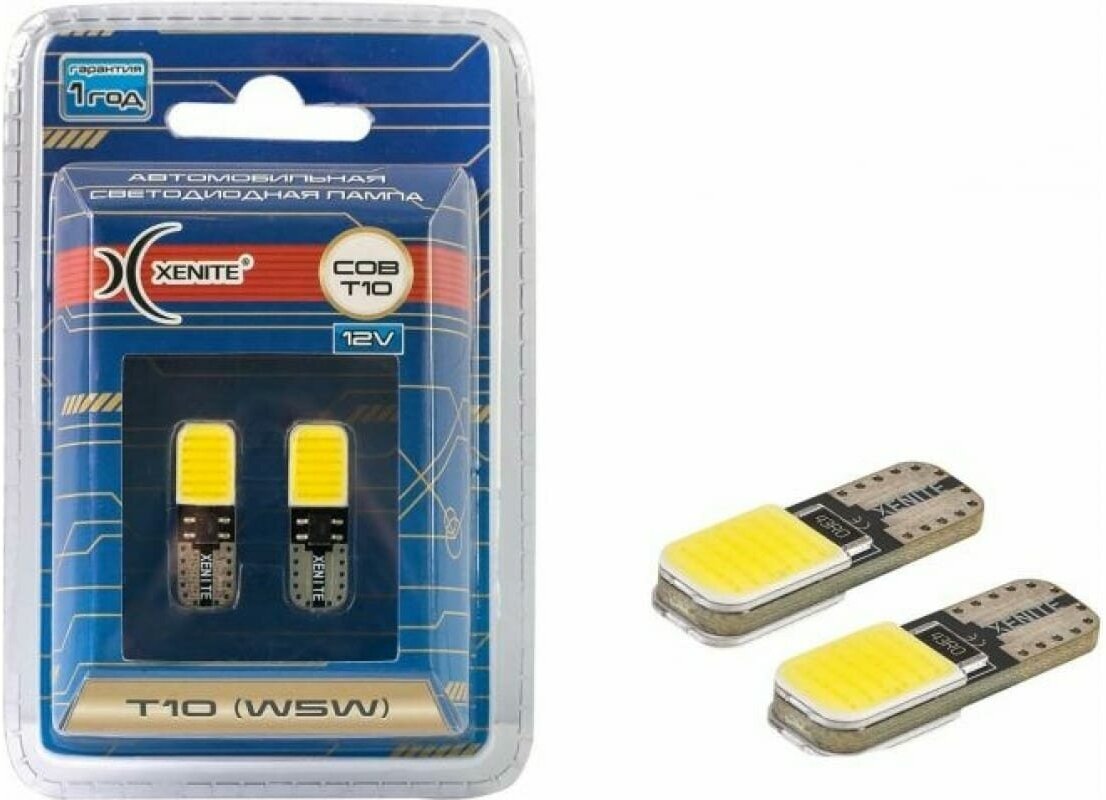 Купить XENITE 1009440 Лампа светодиодная сигнальная Т10(W5W) W2,1*9,5d 5000K COB T10 9-15V 0,08W Блистер 2 шт 10094
