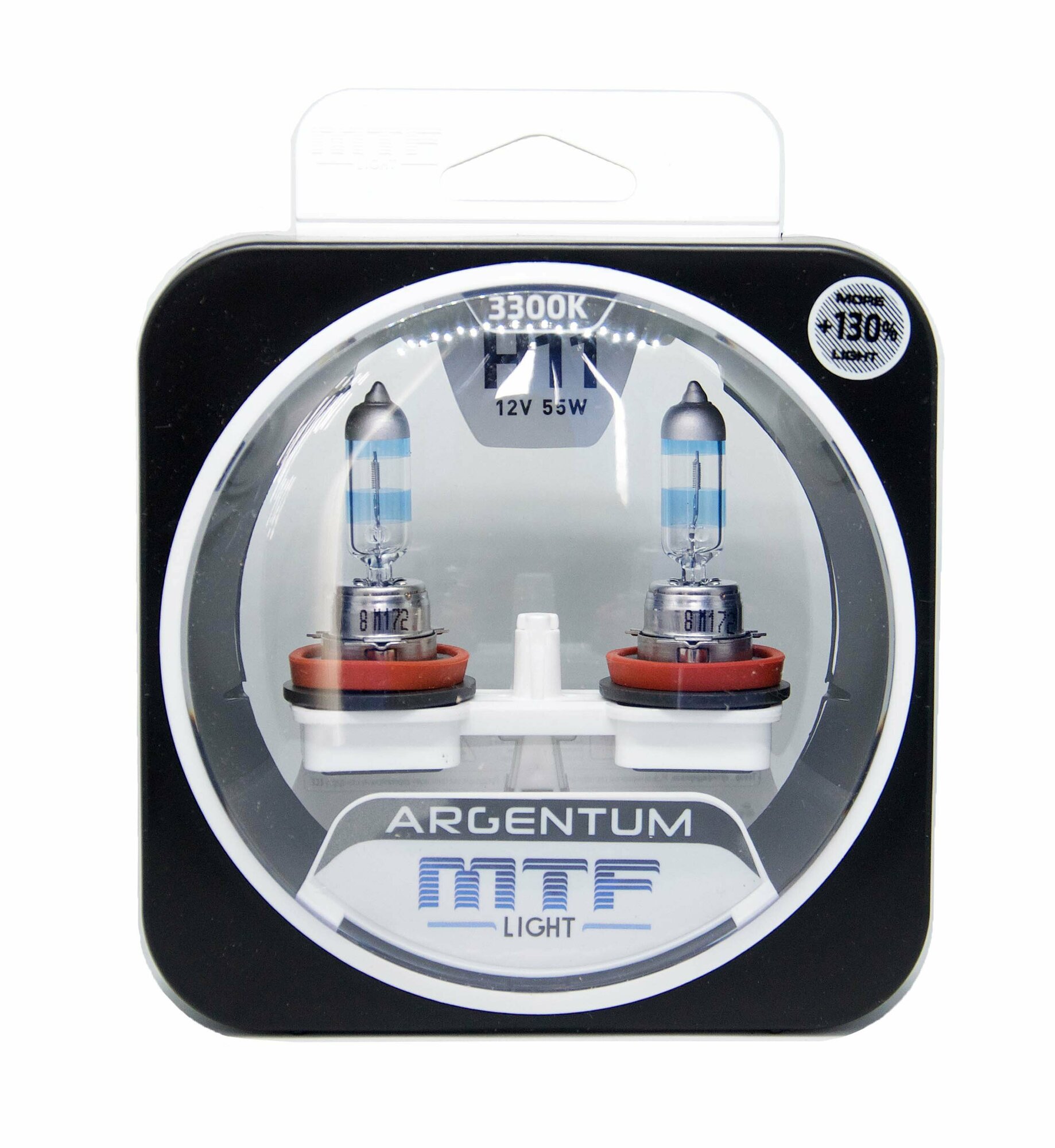 Галогенные автолампы MTF Light серия ARGENTUM +130% H11, 12V, 55W, комплект 2 лампы