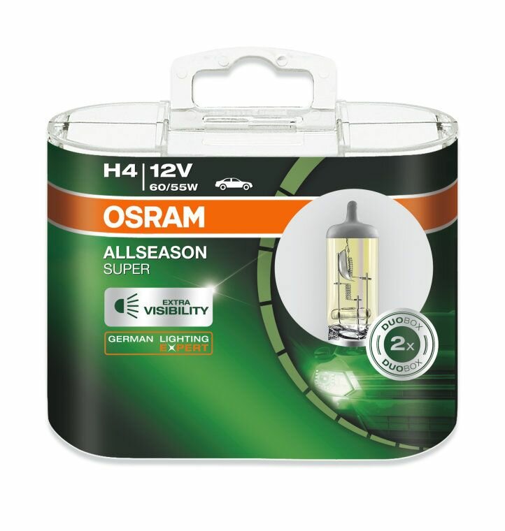 Купить OSRAM 64193ALSHCB 64193ALS-HCB_к-кт ламп ALLSEASON! 2шт. (H4) 12V 60/55W P43t +30% света, цвет. темп. 3000К\