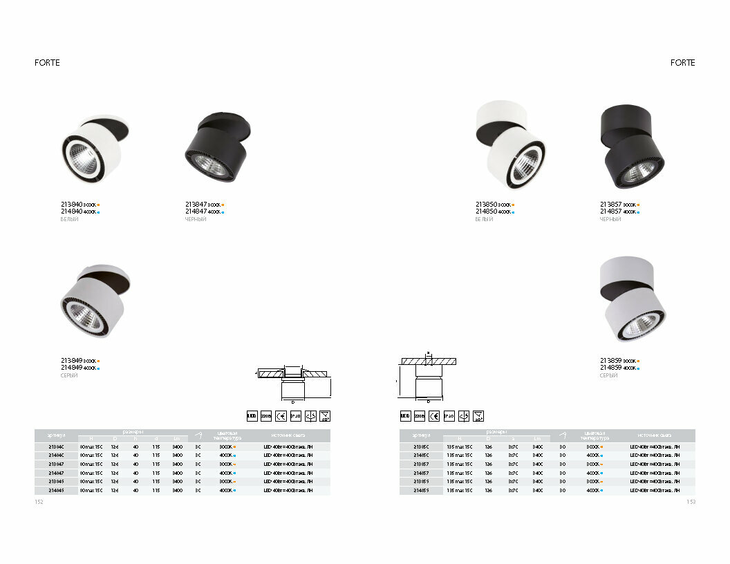 213849 Светильник FORTE INCA LED 40W 3400LM 30G серый 3000K, шт
