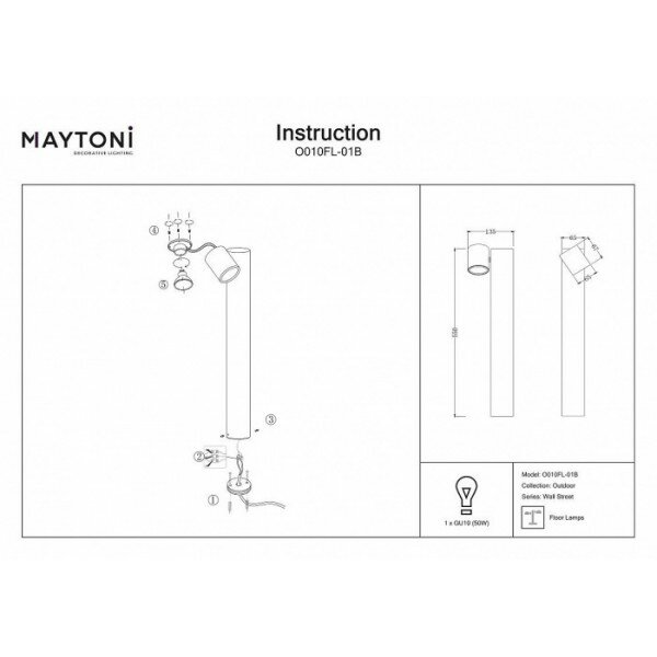 Уличный наземный светильник Maytoni Wall Street O010FL-01B, GU10, кол-во ламп:1шт., Черный