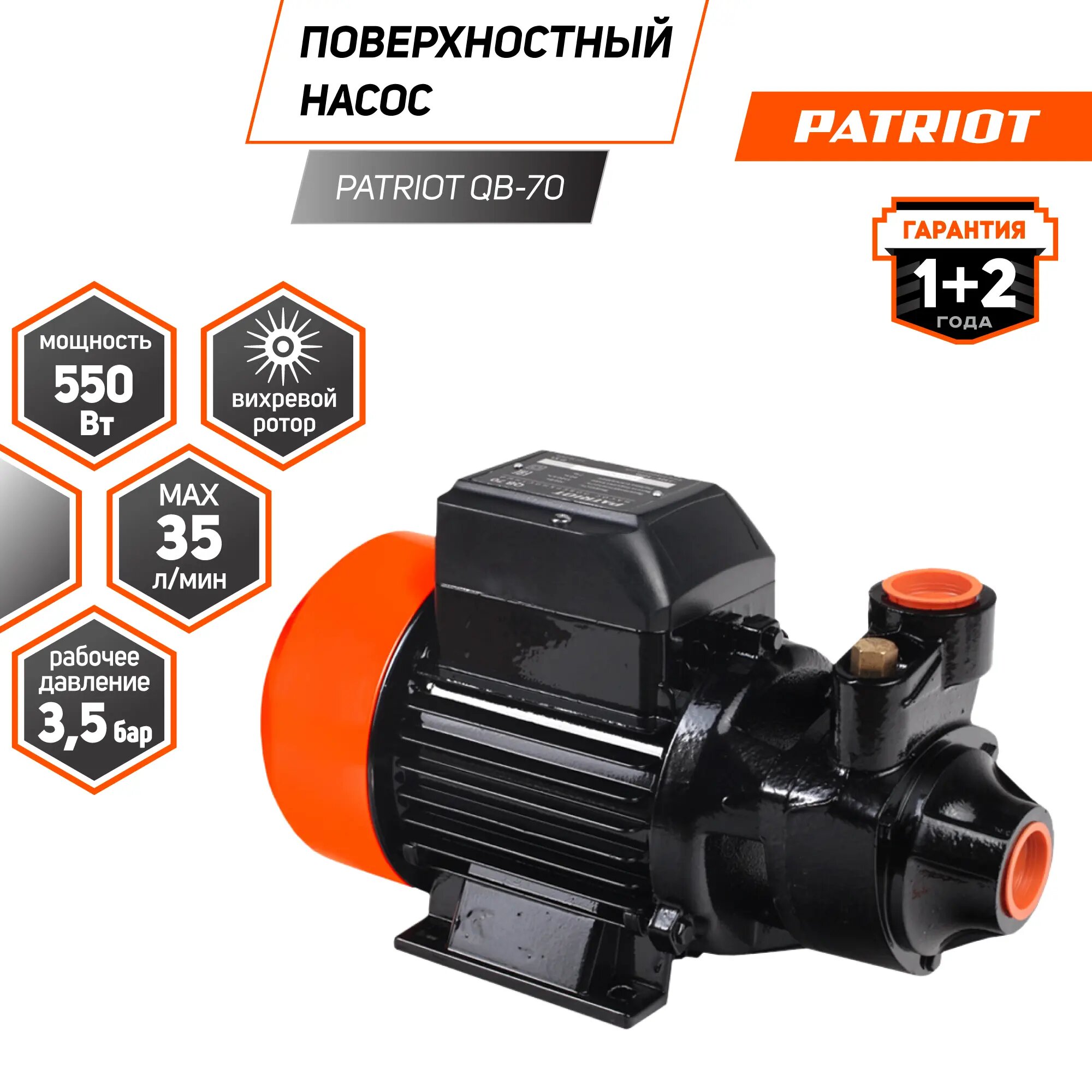 Насос вихревой поверхностный PATRIOT QB-70 /550 Вт, 2100л/час, подъем - 35 метров/