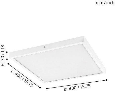 97264 Светодиод. накладной светильник FUEVA 1, 25W(LED), 2500lm, 400х400, H30, алюминий, белый/пласт
