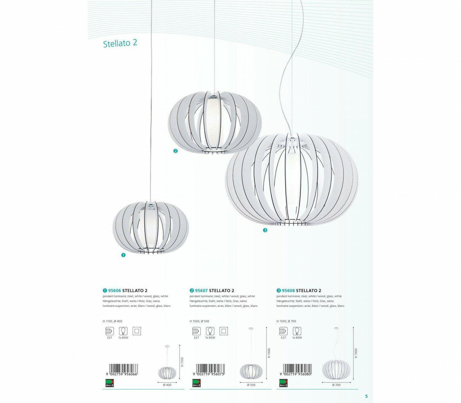 Светильник подвесной Eglo Stellato 2 95606, E27, 60Вт, кол-во ламп:1шт., Белый