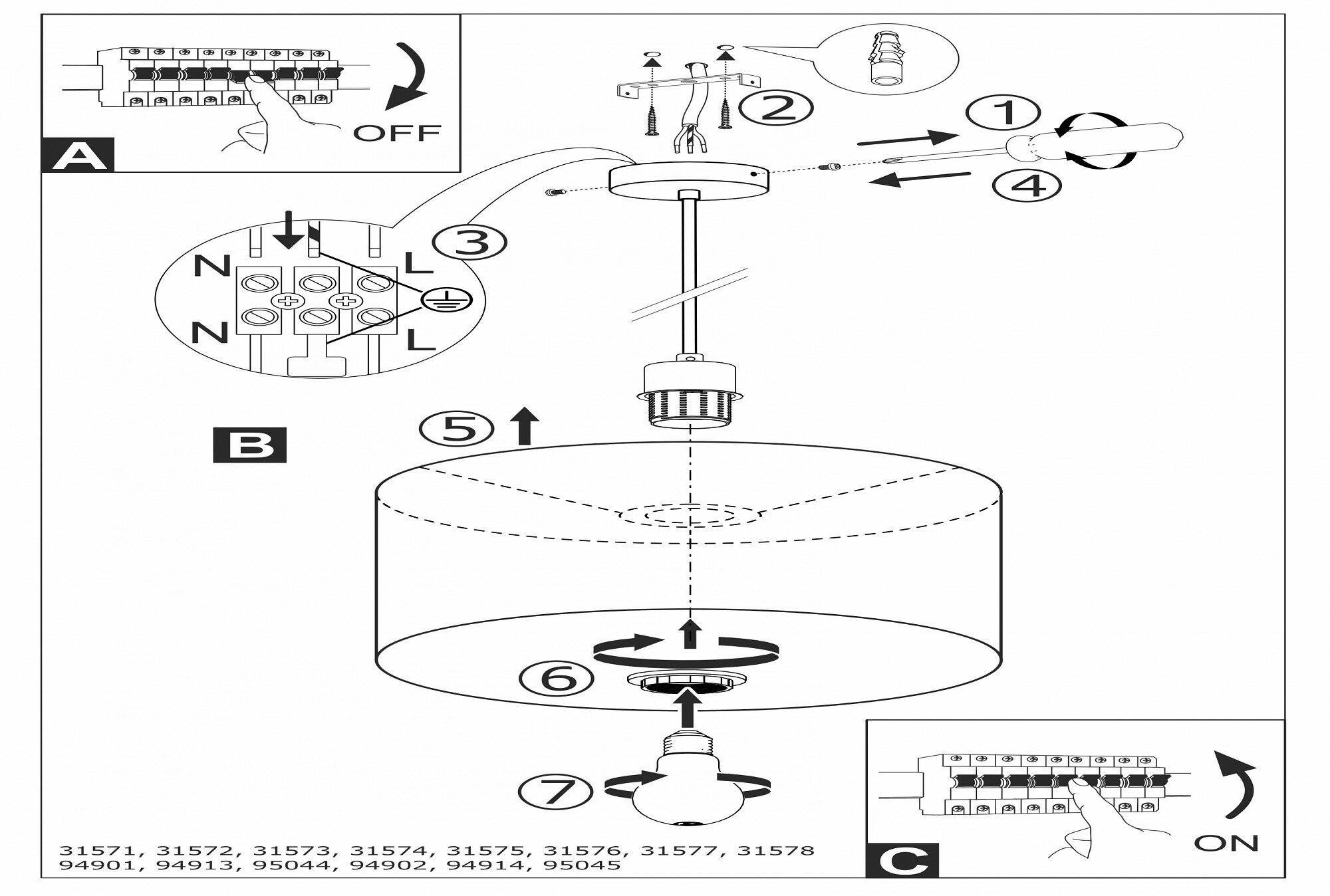 | Направление плафонов | вниз |