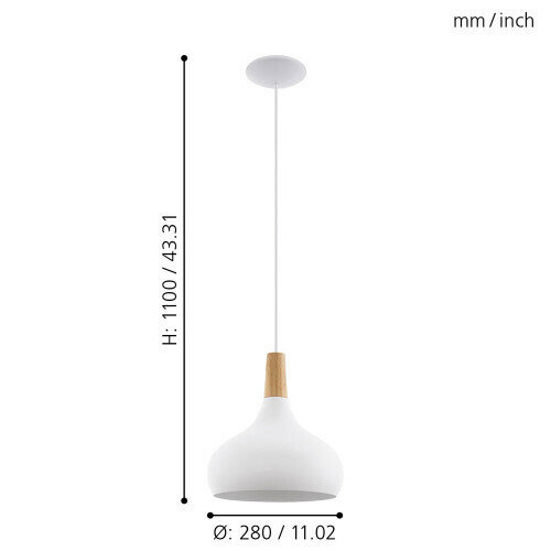 96982 Подвес SABINAR, 1х60W (E27), ?280, сталь, белый/дерево, коричневый