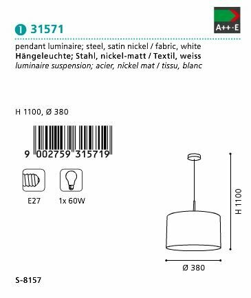 Ниже Вы можете прочитать отзывы на 31571 Подвесной светильник EGLO Pasteri, ознакомится с подробными характеристиками, посмотреть интересные обзоры и фотографии на 31571 Подвесной светильник EGLO Pasteri.