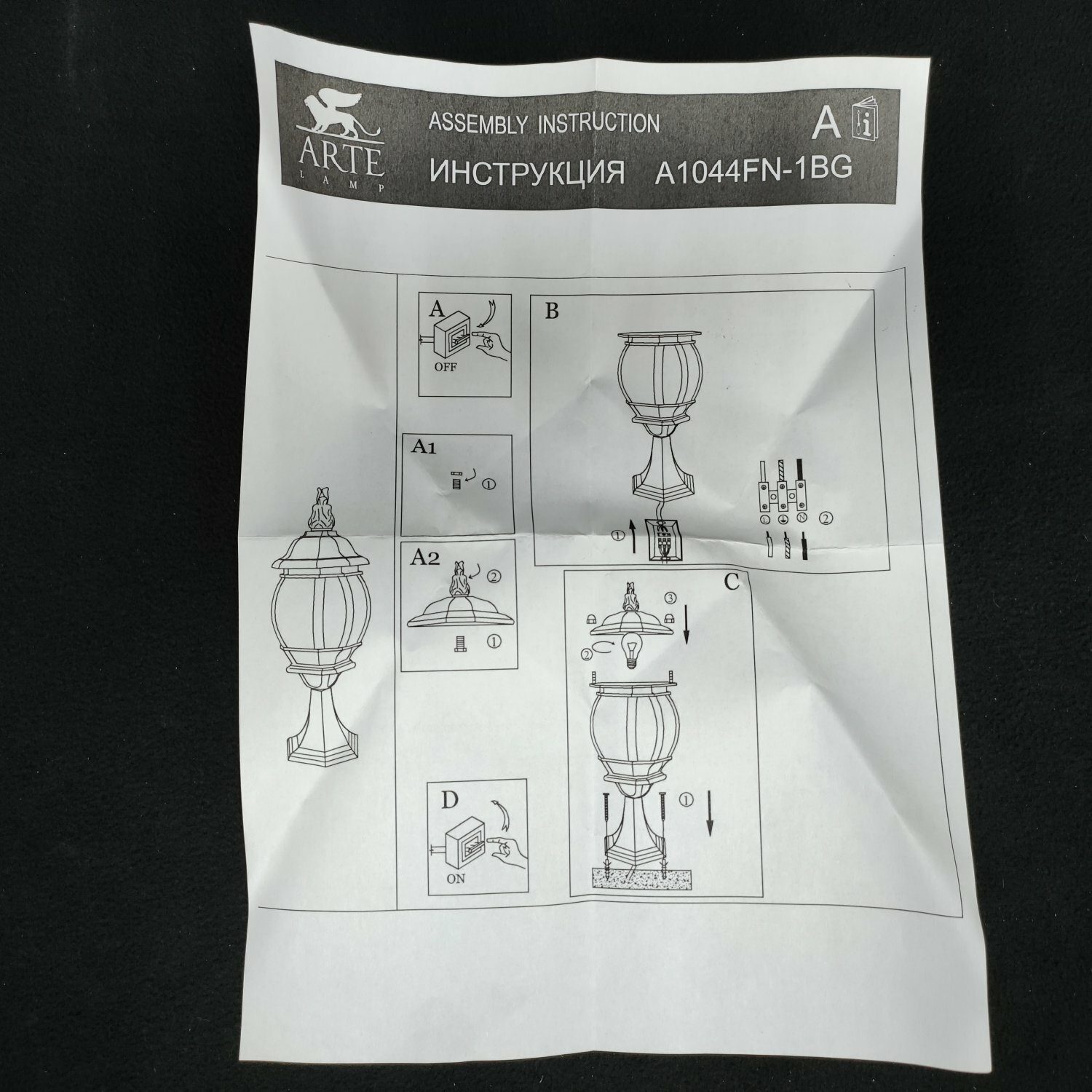 | Подробная комплектация | Уличное освещение Arte Lamp A1044FN-1BG |