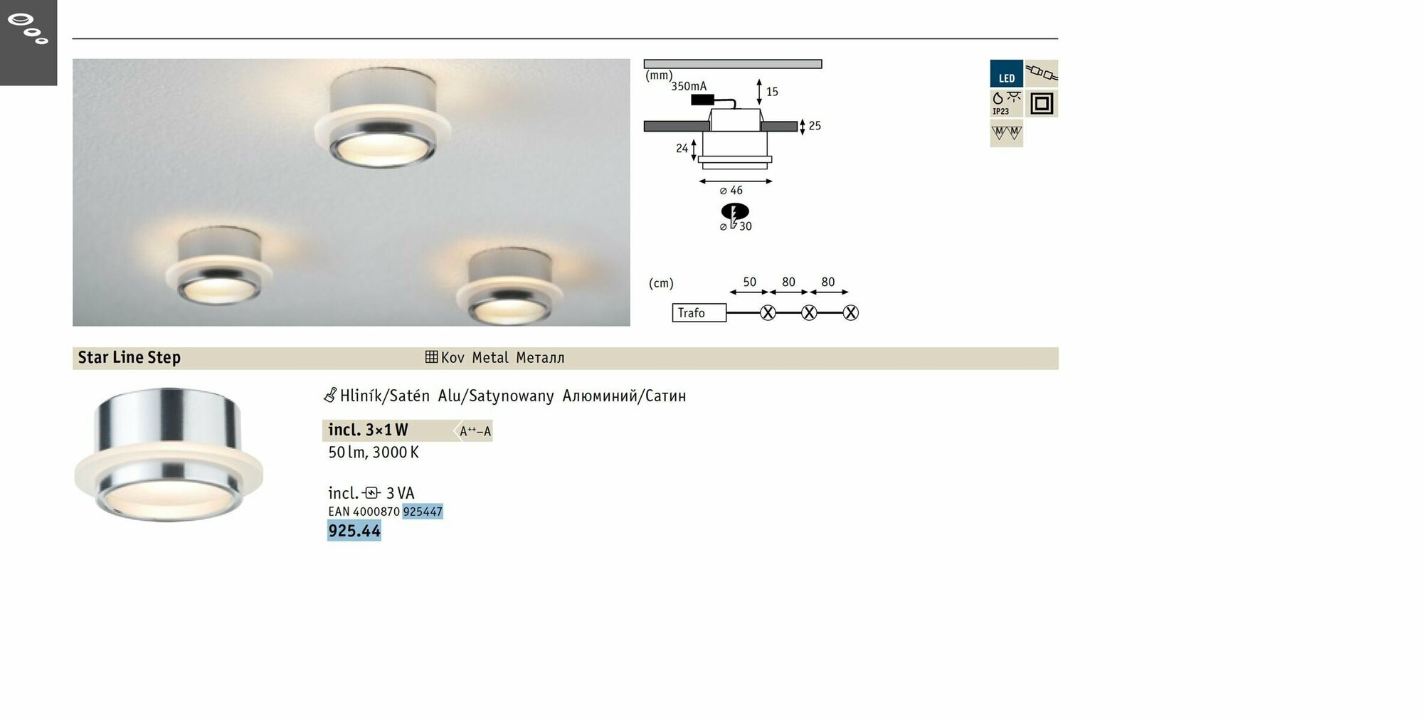 Купить Набор встраиваемых светильников Paulmann Star Line Step 3x1Вт 50Лм 3000К IP23 Алюминий Сатин 92544.