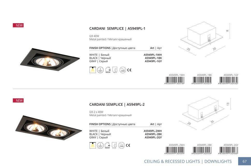 Светильник встраиваемый CARDANI SEMPLICE A5949PL-2WH