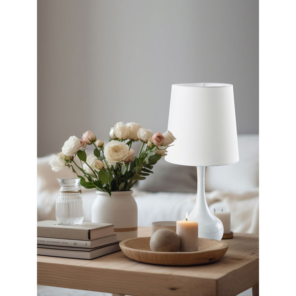 Настольный светильник с абажуром для спальни ясенсвет Салон 415033701, настольная лампа прикроватная интерьерная, 1*60W E27 2700К, цвет: белый