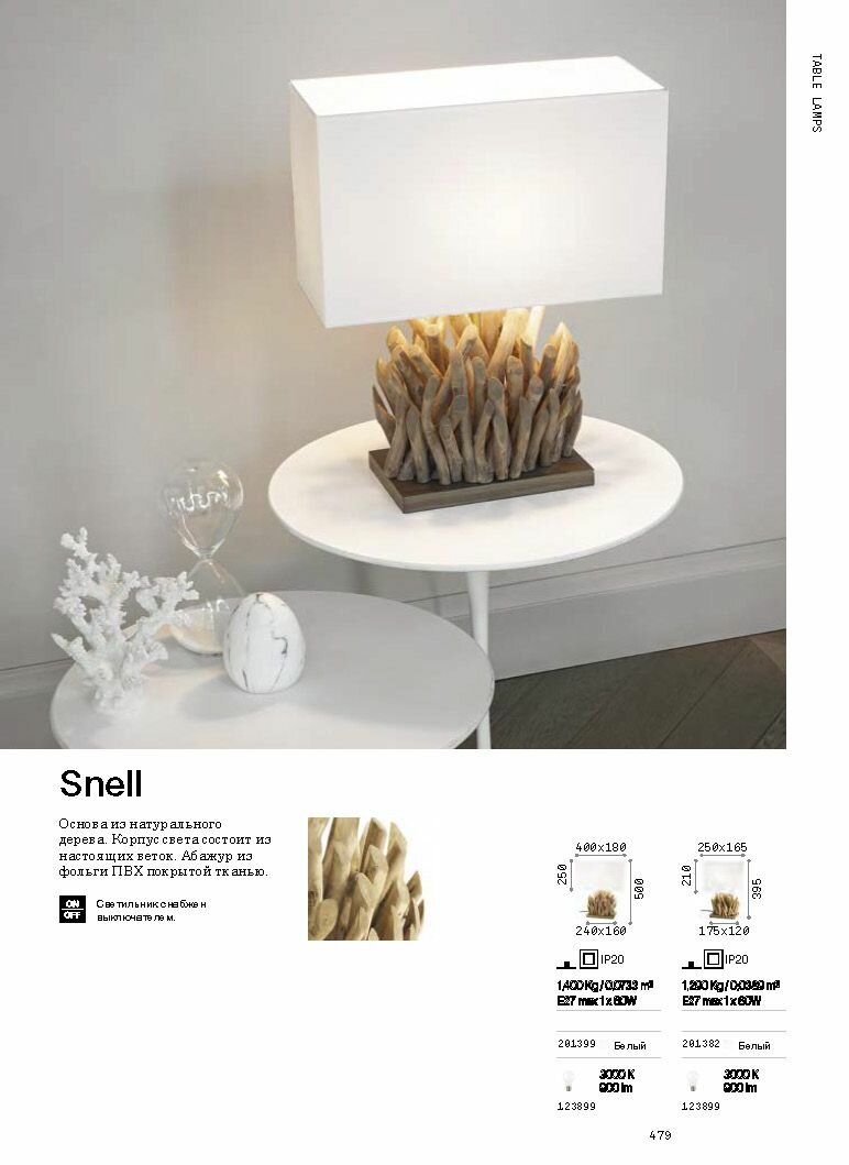 Купить Светильник настольный ideal lux Snell TL1 Small макс.1х60Вт IP20 e27 230В Дерево/Белый Дерево/ПВХ/Ткань Выключатель Без лампы 201382.
