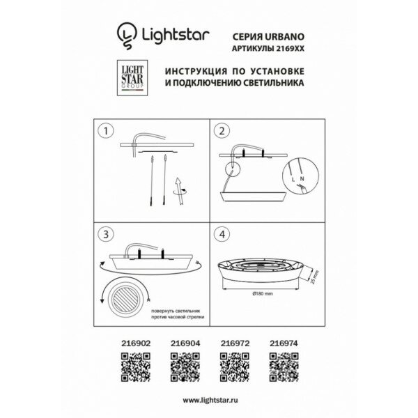 СохранитьСветильник потолочный Lightstar URBANO 216974 интересное: