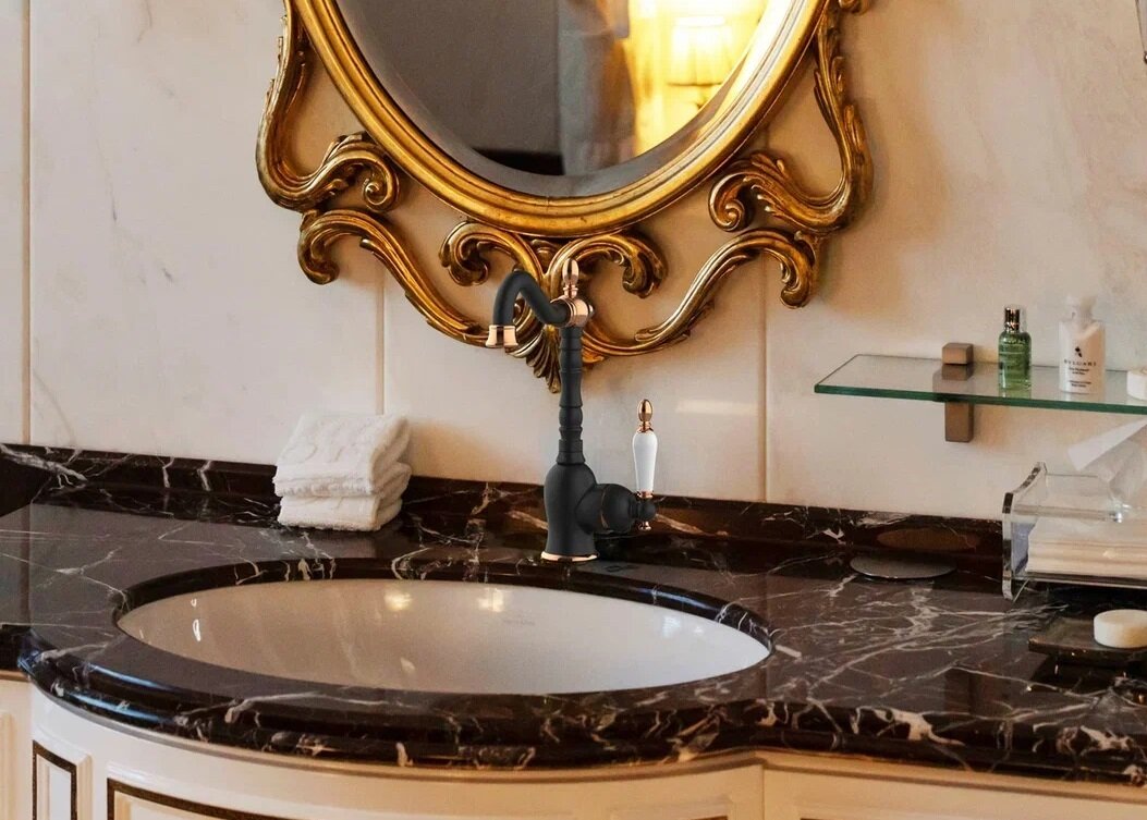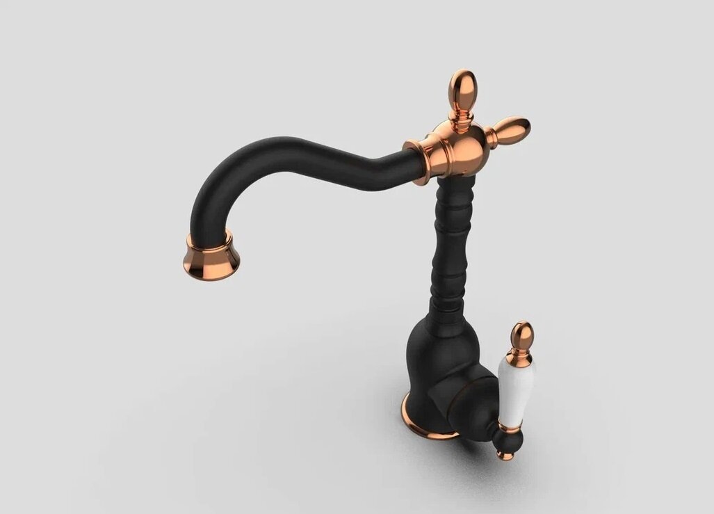 Смеситель для раковины GPD Retro Colored MTL180-S-R Черный матовый Розовое золото интересное:
