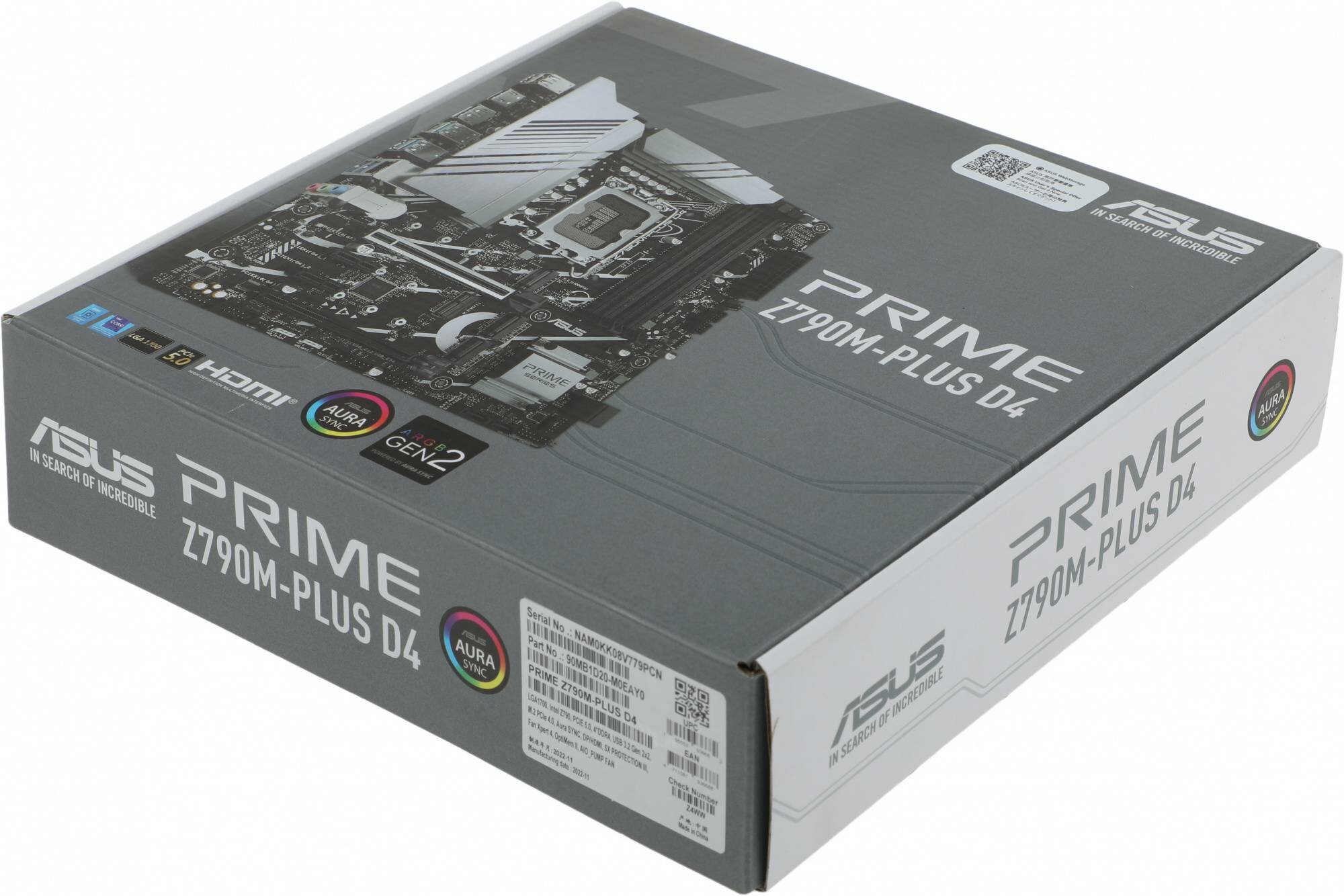 Материнская плата ASUS PRIME Z790M-PLUS D4, LGA1700, Z790, 4*DDR4, HDMI+DVI+DP, CrossFireX, SATA3 + RAID, Audio, Gb LAN, USB 3.2, USB 2.0, COM*1 header (w/o cable), mATX ; 90MB1D20-M0EAY0