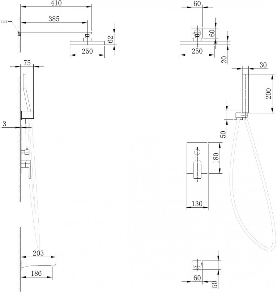 Душевой комплект 250 мм Abber Weiss Insel AF8017B