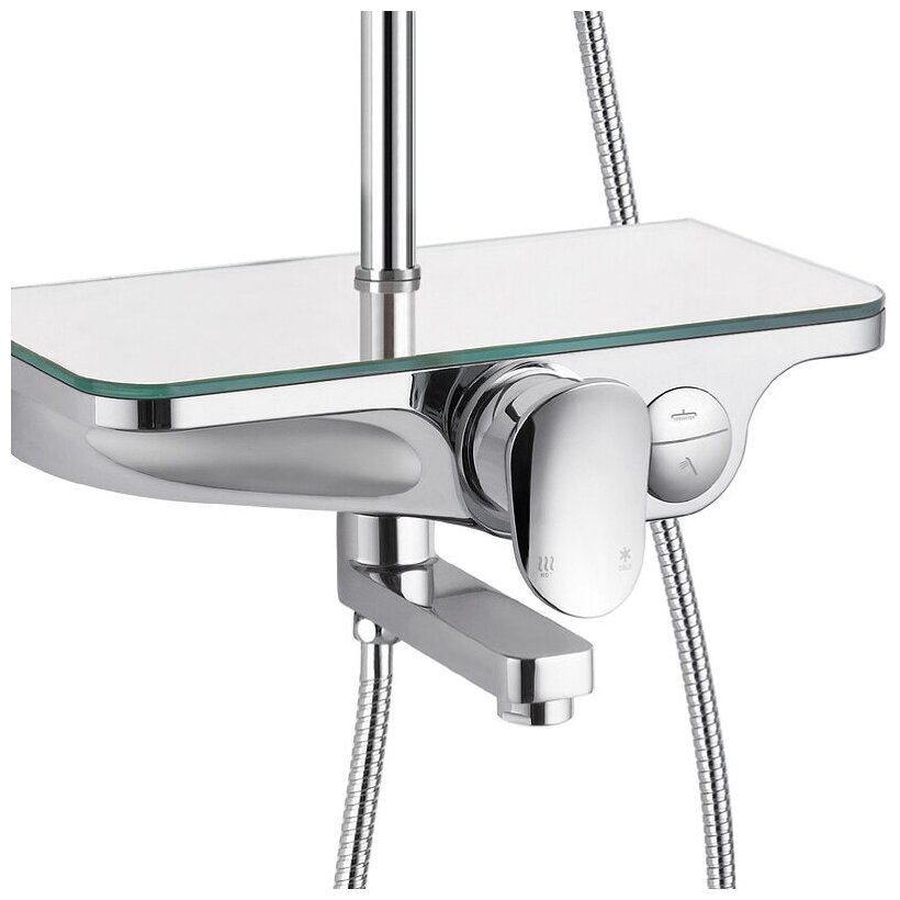 | Комплектация | Смеситель / верхний душ / ручная лейка / штанга / шланг для душа / полочка |