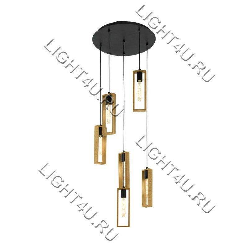 Купить Подвес LITTLETON, 6x60W (E27), Ø500, H1500, сталь, черный/дерево, коричневый
