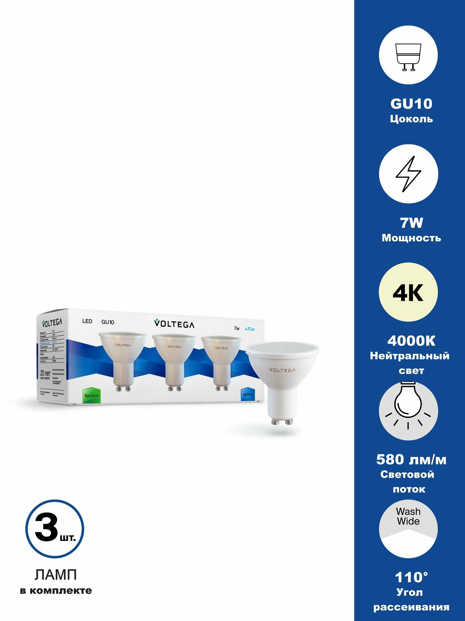 Лампочка светодиодная Voltega Simple, 7173, 7W, GU10 (набор из 3 ламп) интересное:
