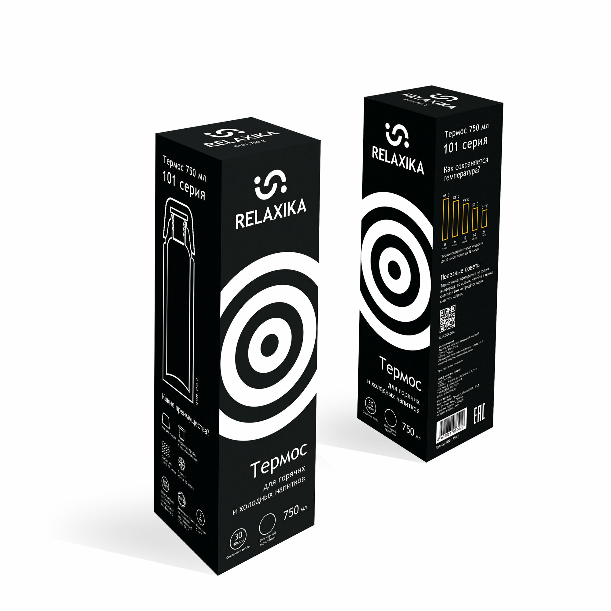 Купить Термос Relaxika + стикерпак Красоты России 750ml Black R101.750.2