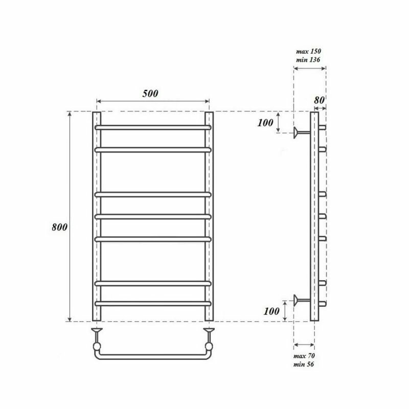Водяной полотенцесушитель Aquanet Mauro(г2) 800x500